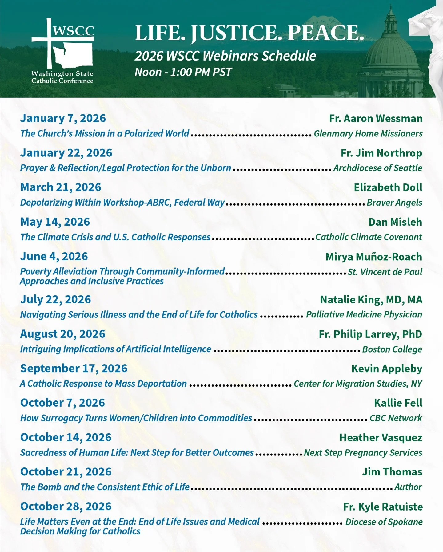 View and register for all upcoming 2026 WSCC Life. Justice. Peace. Webinars here!