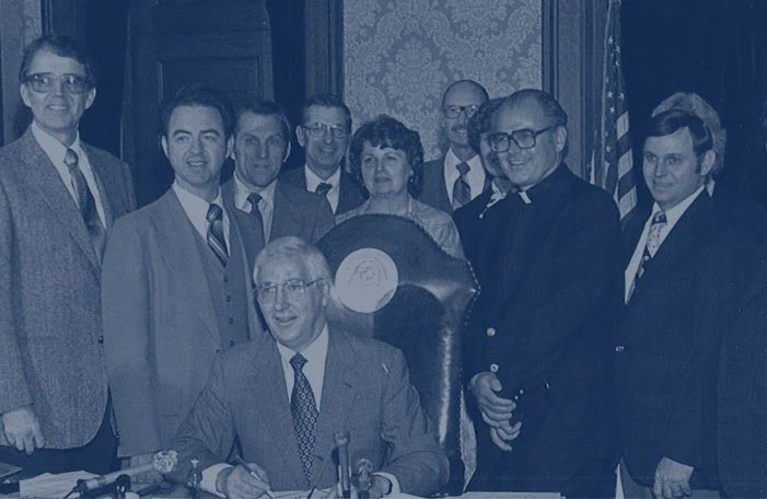 Fr. Harvey McIntyre, first Executive Director of the WSCC, with Governor John Spellman, circa 1983.