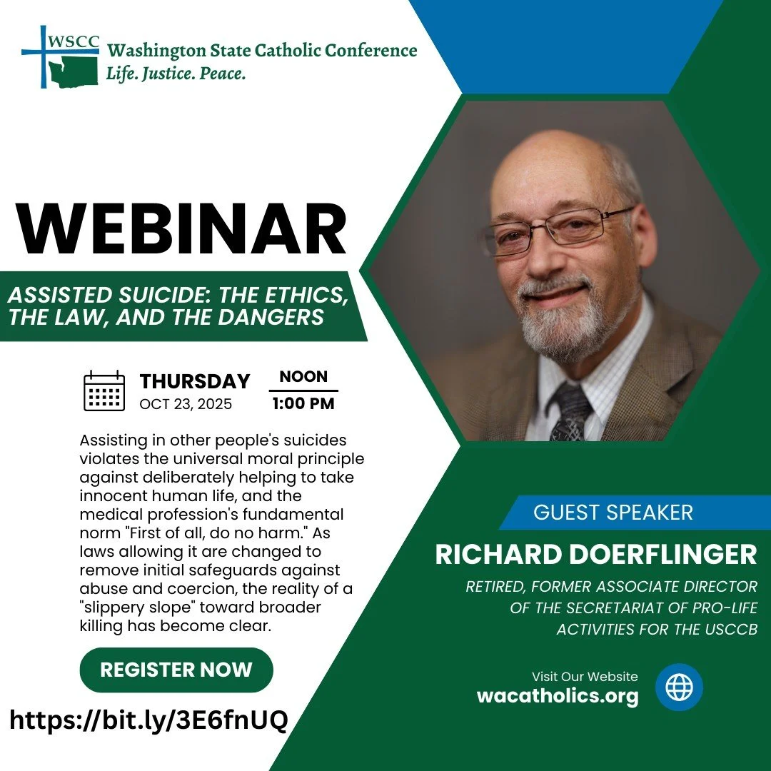 Please note that all webinars are offered live in English but will be posted shortly thereafter with captions in Spanish to the WSCC’s YouTube channel — @WACatholics.
